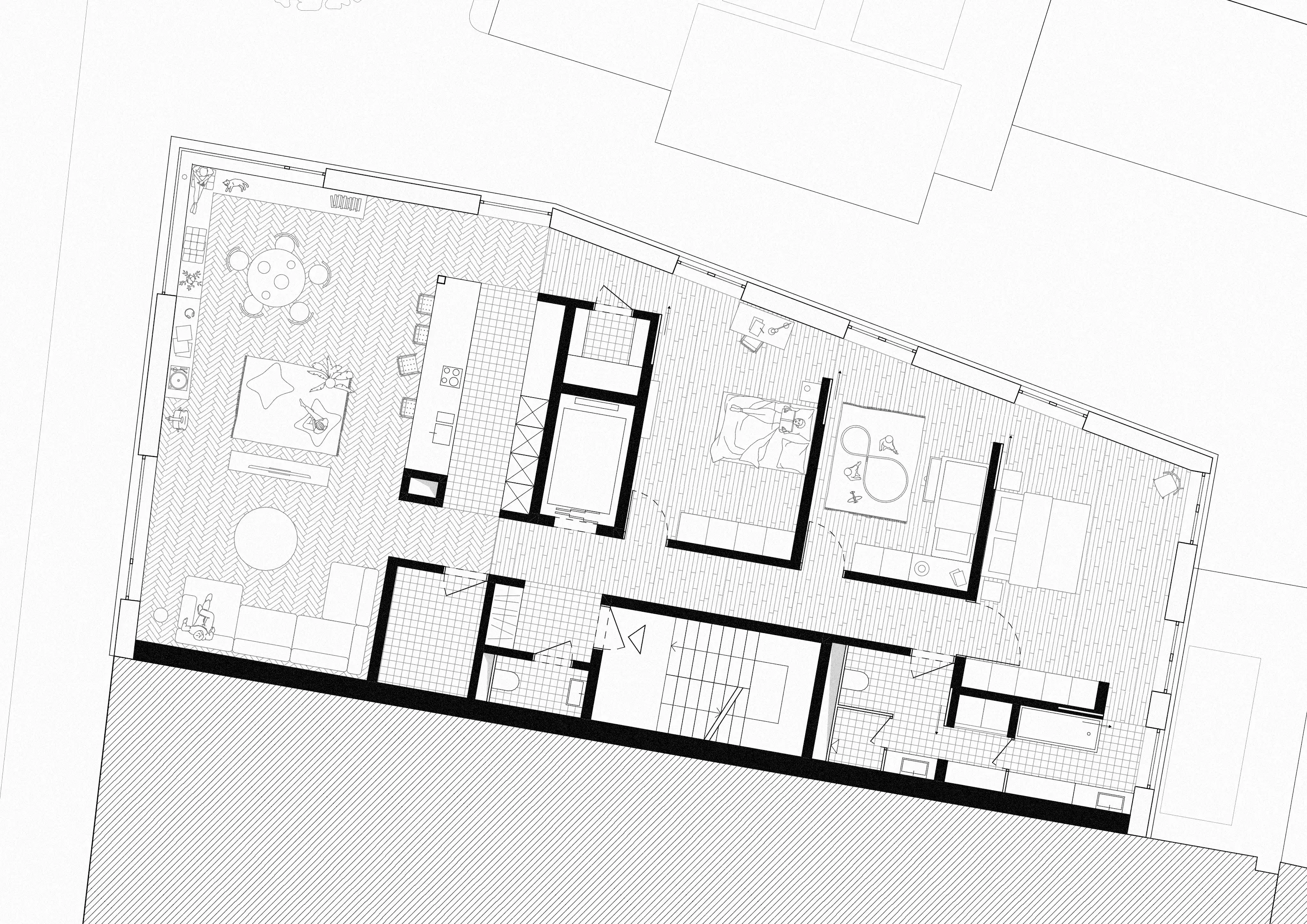 Lägenheternas utformning i projektet baseras på fyra grundläggande arkitektoniska kvaliteter: axialitet, cirkulation, en tydlig rumslig organisation och rumsliga proportioner som möjliggör anpassningsbarhet.