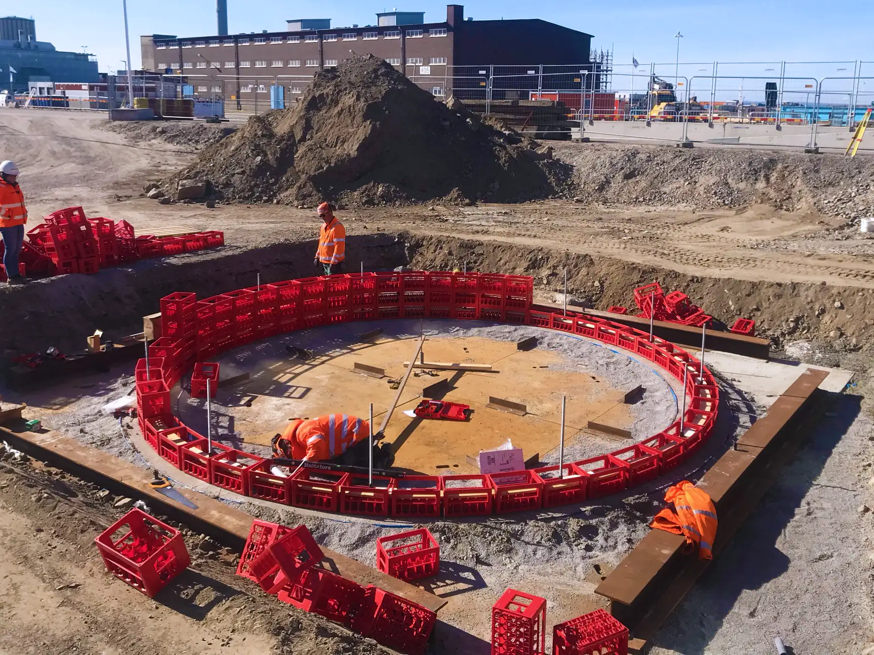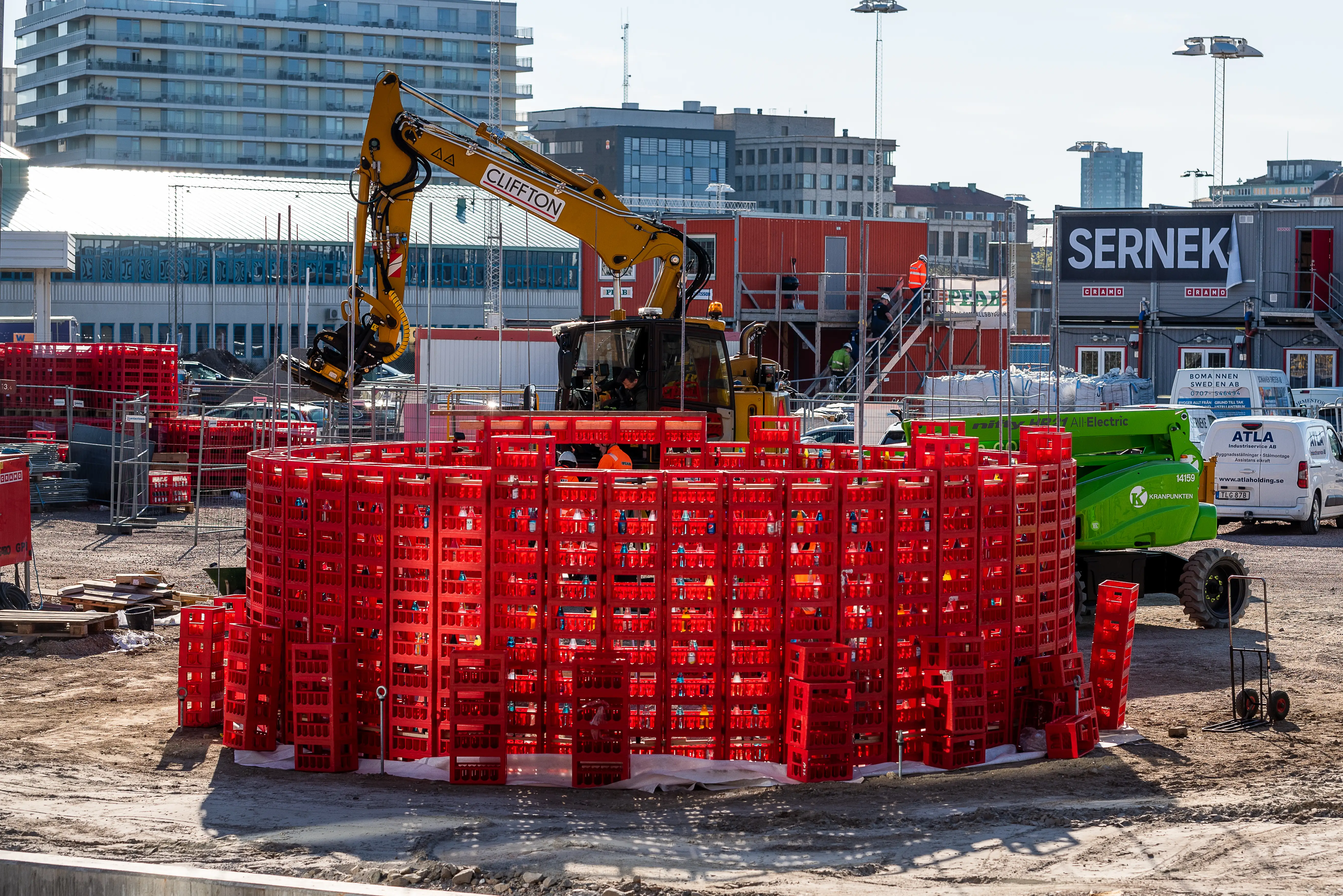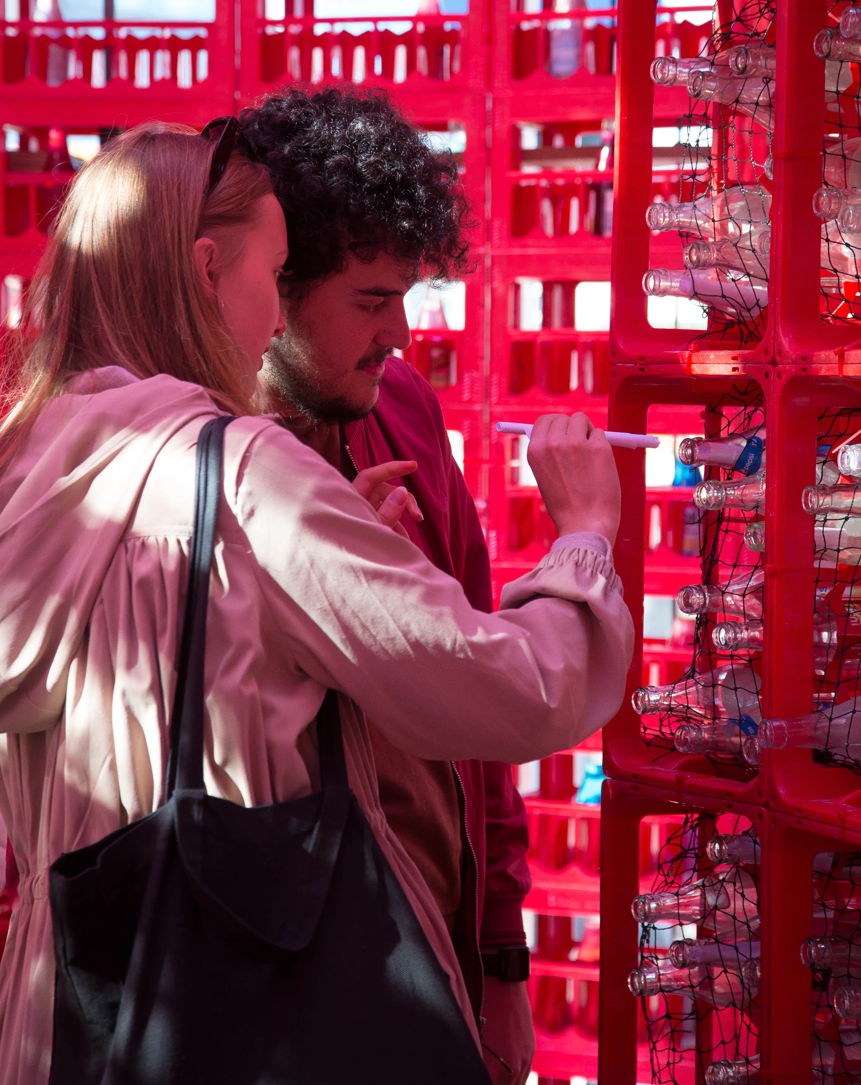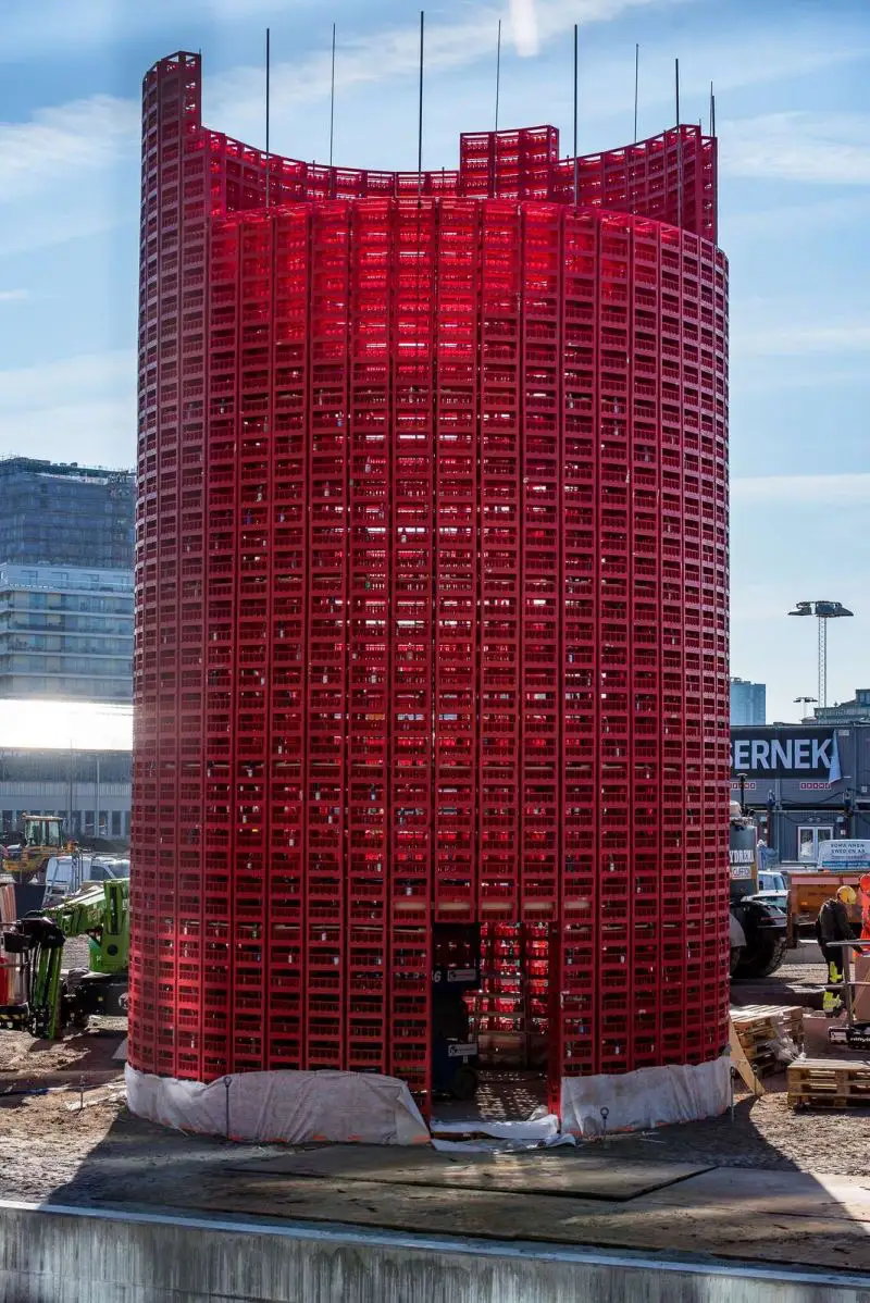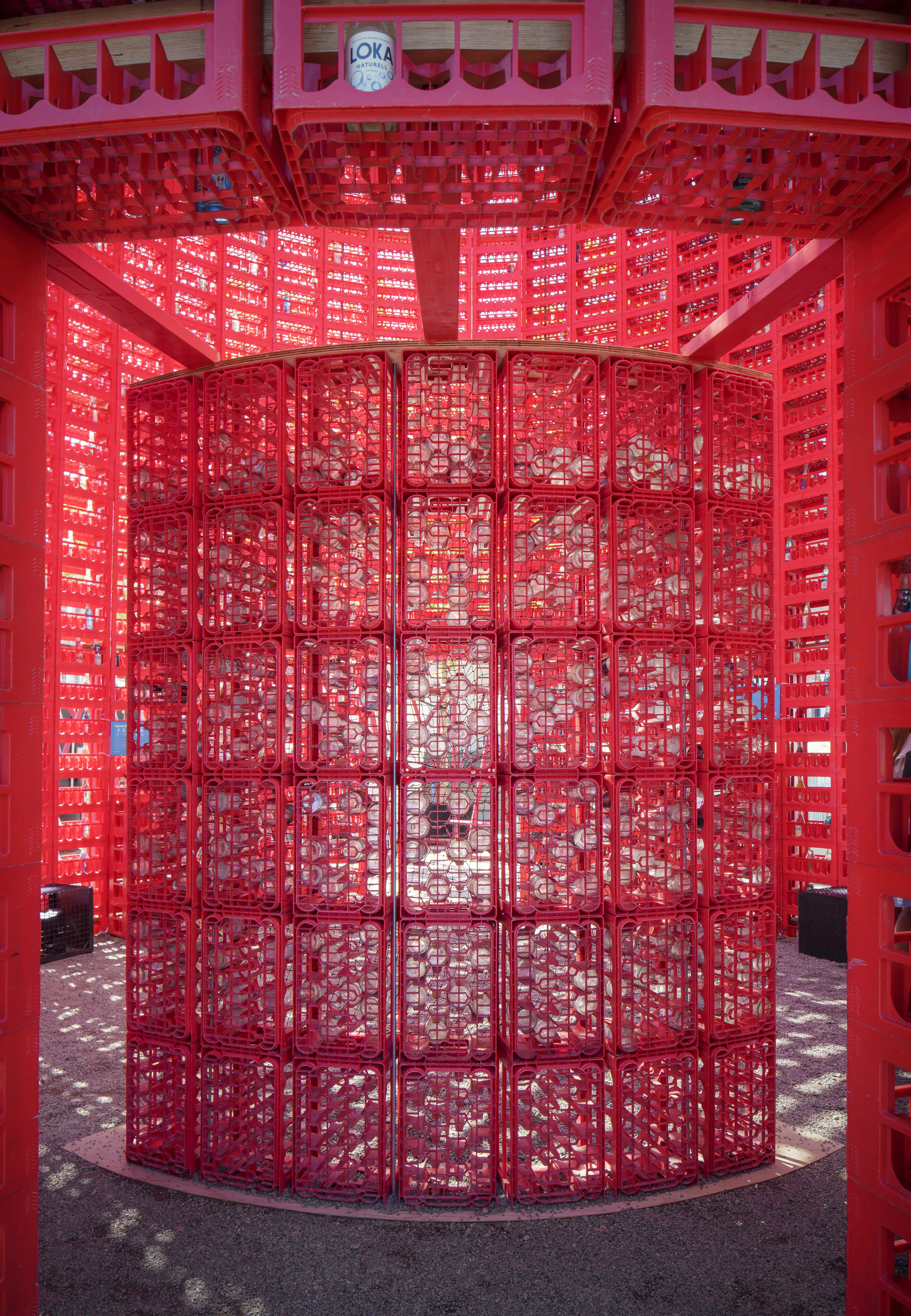 Den huvudsakliga idén för paviljongen var att använda vanliga, röda drickabackar som det grundläggande konstruktionselementet, för att på så vis uppnå ett cirkulärt byggsystem för den tillfälliga konstruktionen. Efter demonteringen av paviljongen kunde backarna pantas och återgå till sitt naturliga kretslopp. Genom att konstruera paviljongen av ett välkänt men samtidigt okonventionellt byggelement bjuds besökare, oavsett förkunskaper, in att reflektera över rummets uppbyggnad.